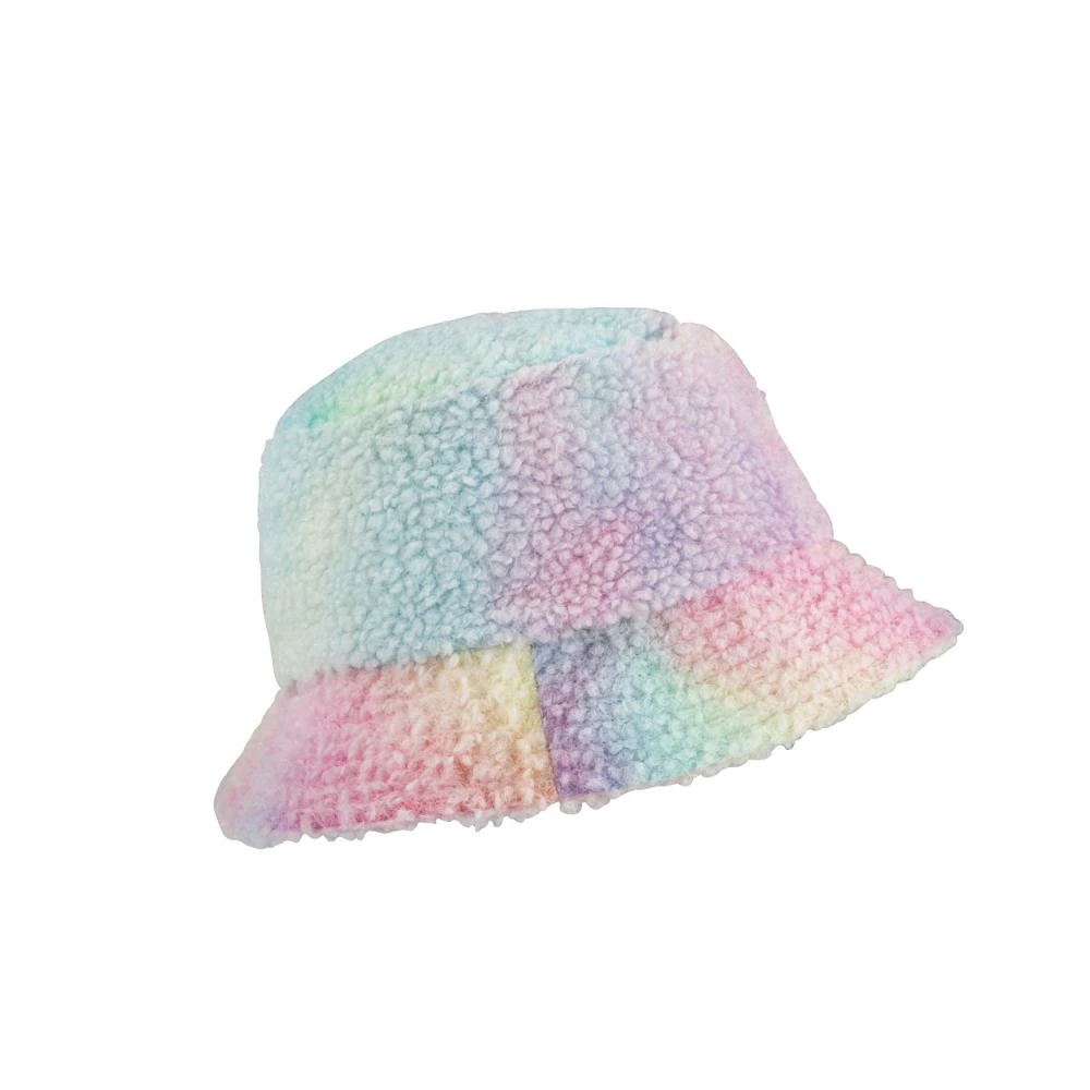 100% polyester, sherpa fleece, bucket hat with all over pattern and woven label